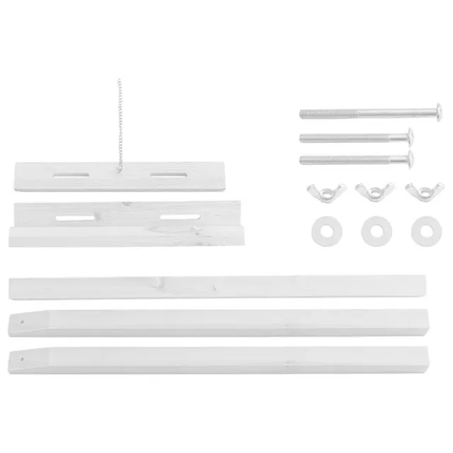 This easel stands 170cm tall and is designed to hold up to 6kg of weight. The bottom shelf is adjustable, whereby it can be moved to sit lower or higher to accomodate different sizes of posters, frames, or canvases.