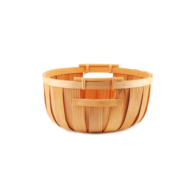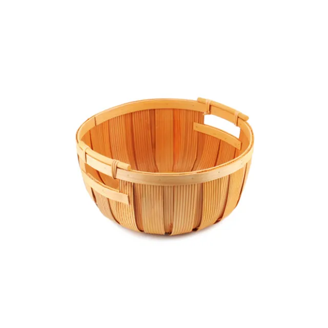 Made from thin sliced natural wood chip making it lightweight. Basket measures 28cm in diameter and 12cm in height. Base measures 18cm in diameter. Available in 2 sizes and 3 colours.