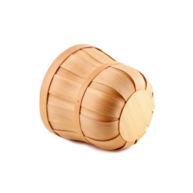 Made from thin sliced natural wood chip making it lightweight. Basket measures 30cm in diameter and 25cm in height. Base measures 15cm in diameter. Available in 2 colours.